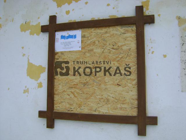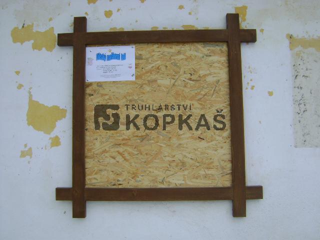 Informační nástěnná tabule je vyrobená z materiálu 3,5 x 7,5 cm a OSB desky síly1,2 cm.