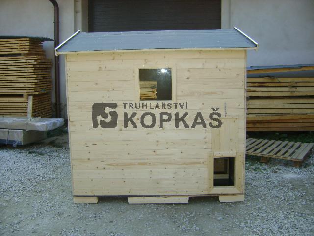 Kurník je vyrobený z hranolů 7,5 x 3,5 m a palubek síly 2 cm.