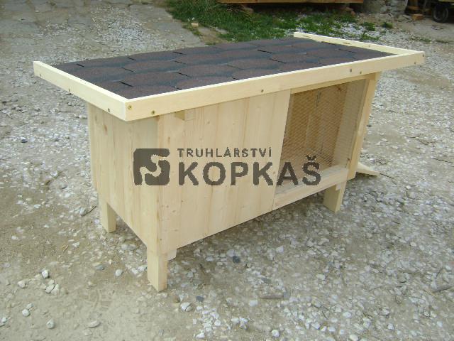 Klec pro králíka je zatelená a je vyrobená z palubek síly 1,9 cm.