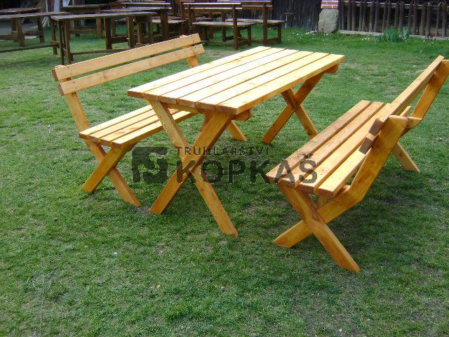Zahradní set je vyroben z materiálu síly 3,5 cm a délky 150 cm. Cena je bez nátěru