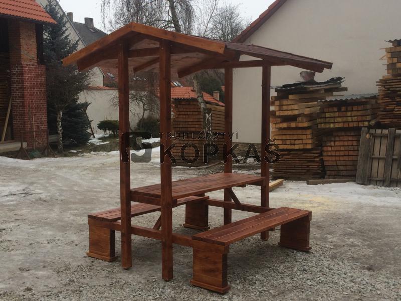 Tato zastřešená souprava je vhodná k umístění na turistické trasy, cyklotrasy, dětská hřiště atp.